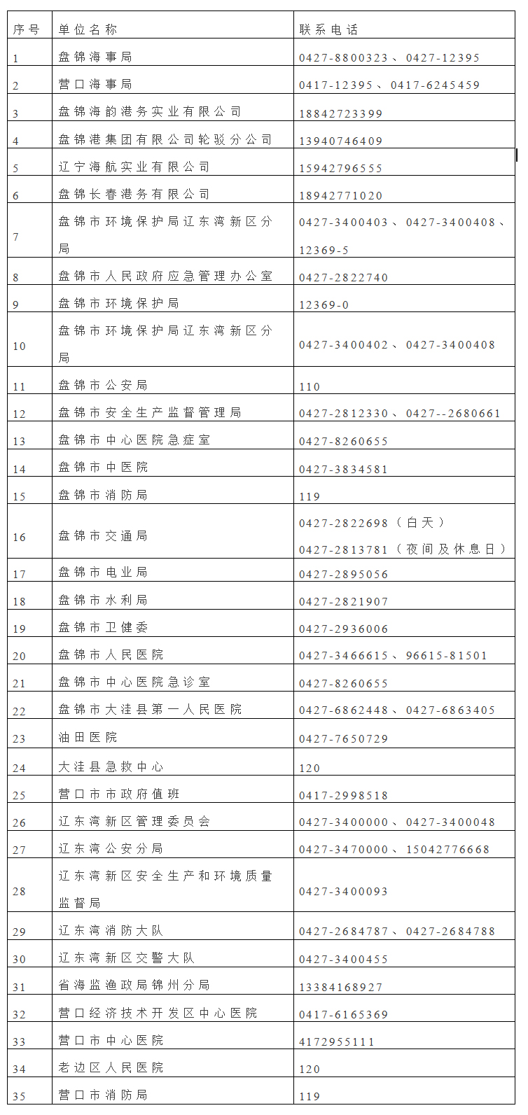 发生任何级别的溢油事件,应在最快时间内向盘锦海事搜救中心报告。由盘锦海事搜救中心了解掌握险情及行动情况,及时作出相应安排,并组织、协调和指挥海上搜救行动。