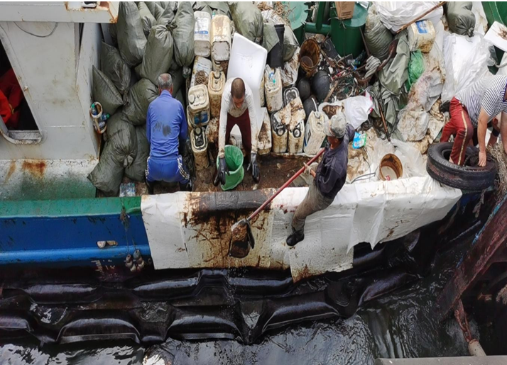 “舟海油52”轮应急清污作业