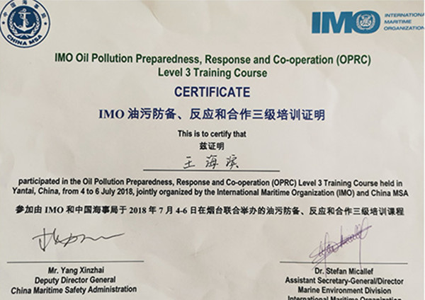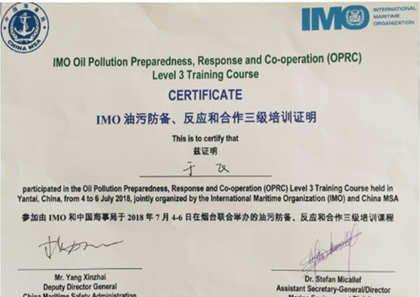 2018年6月参加交通部海事局组织的溢油处置高级指挥培训